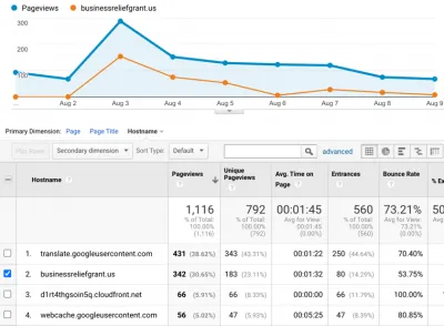 Two months later, I checked the analytics account again, and there were two more websites operating a similar scam. The two sites, which were identical, were offering grants with information request forms asking for Personally identifiable information (PII) such as social security numbers. They were using USA.gov’s look and HTML code, but they had also added a U.S. Department of Health and Human Services (HHS) logo for good measure. Our agency was able to get the websites taken down quickly.