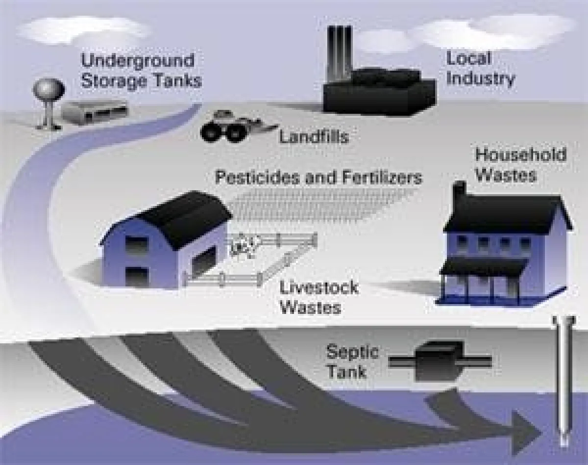 This image from the Environmental Protection Agency (EPA), shows how ground water can become contaminated from various sources, including:
